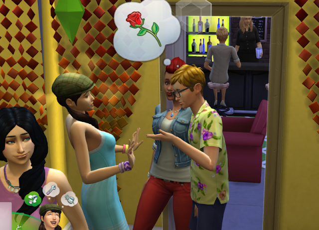 彼らの誘惑アクションがうまくいかないのは、シムが沢山居て二人きりになれない場所だったというのもあるけど、リバティが彼氏持ちだというのも原因のひとつなんじゃないのかな・・・